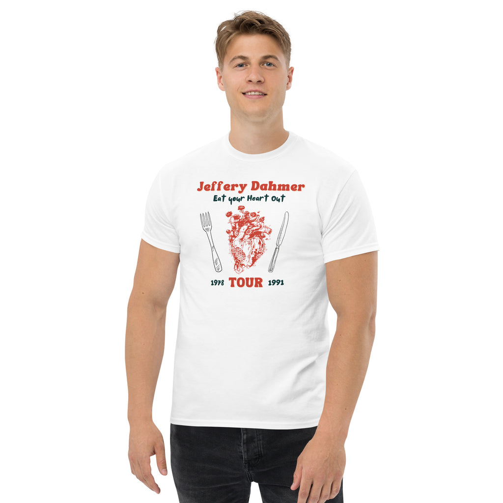 The 100% cotton men's classic tee will help you land a more structured look. It sits nicely, maintains sharp lines around the edges, and goes perfectly with layered streetwear outfits. Plus, it's extra trendy now!