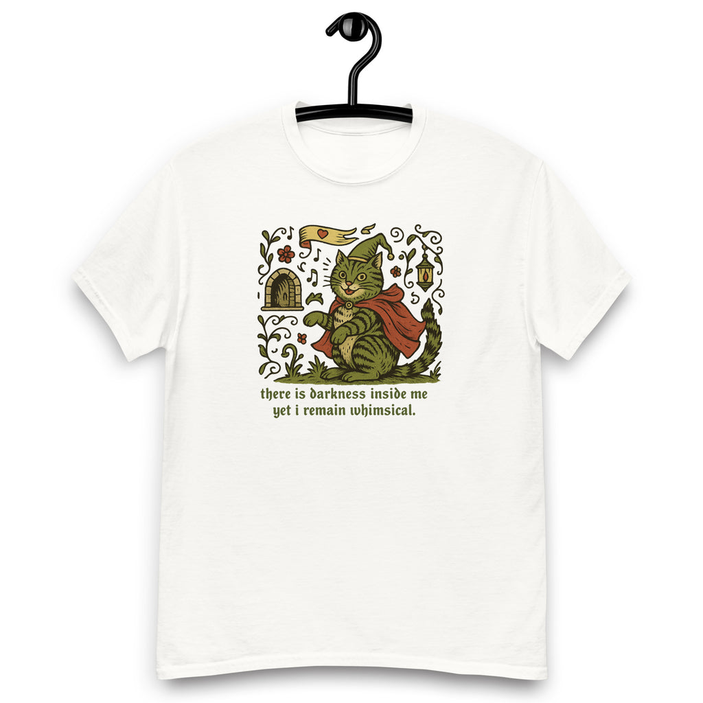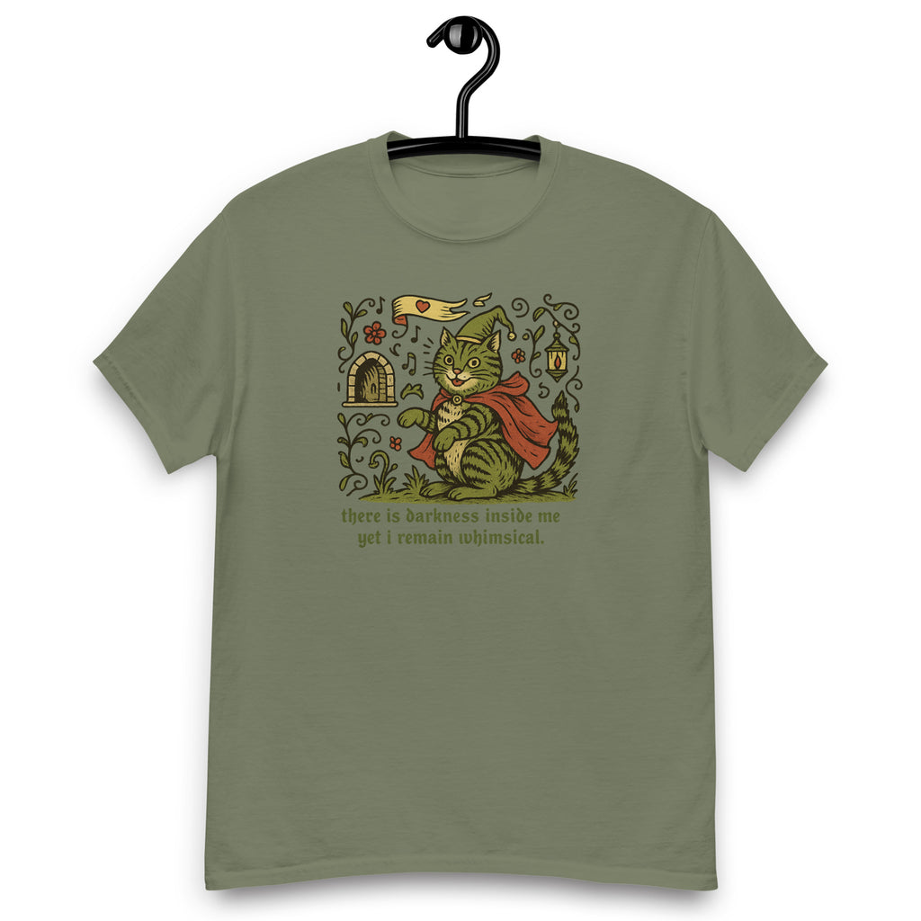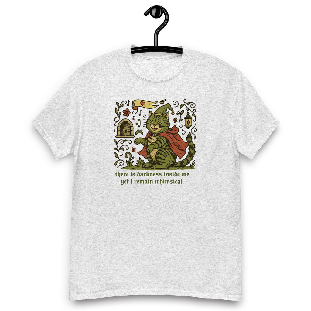 darkness inside yet I remain whimiscal funny cat shirt, funny medieval, knight, weirdcore, fantasy, cat, medieval cat, cat gift, Unisex tee
